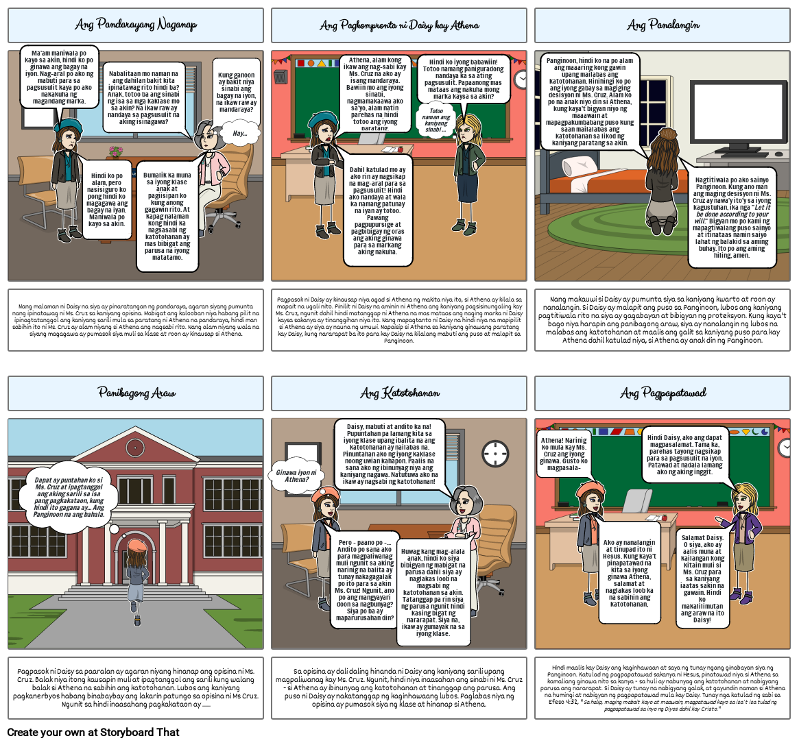 Pagpasok ni Daisy ay kinausap niya agad si Athena ng makita niya ito, si Athena ay kilala sa mapait na ugali nito. Pinilit ni Daisy na aminin ni Athena ang kaniyang pagsisinungaling kay Ms. Cruz, ngunit dahil hindi matanggap ni Athena na mas mataas ang naging marka ni Daisy kaysa sakanya ay tinanggihan niya ito. Nang mapagtanto ni Daisy na hindi niya na mapipilit si Athena ay siya ay nauna ng umuwi. Napaisip si Athena sa kaniyang ginawang paratang kay Daisy, kung nararapat ba ito para kay Daisy na kilalang mabuti ang puso at malapit sa Panginoon.