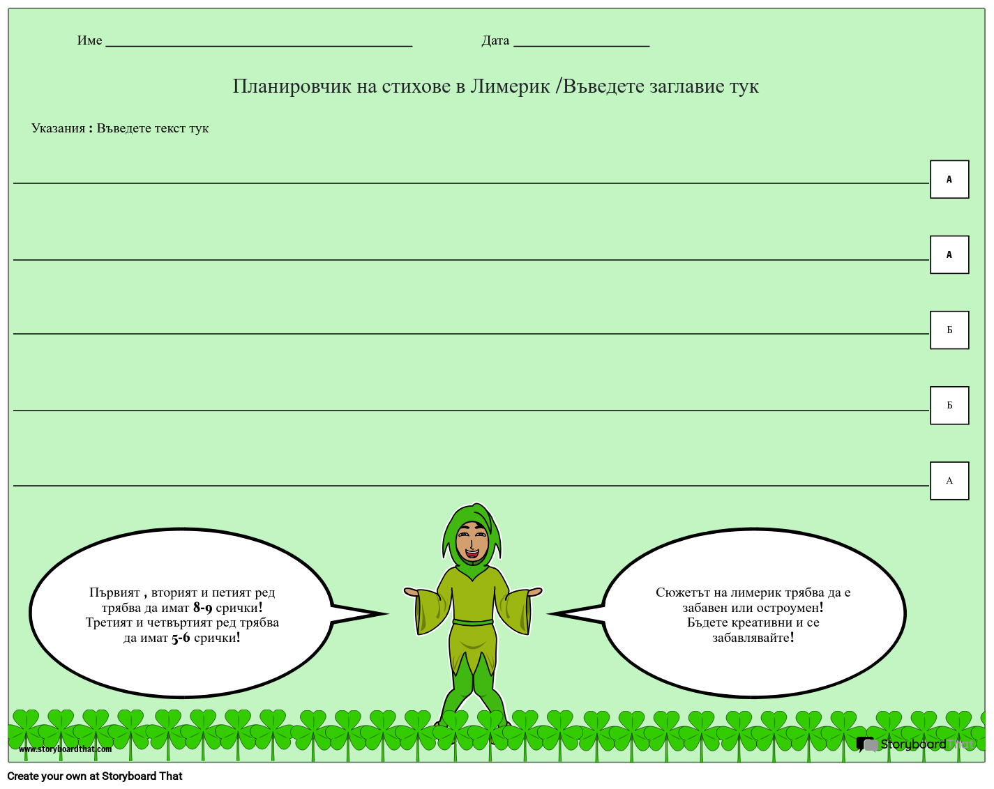 • Сюжетът на лимерик трябва да е забавен или остроумен! Бъдете креативни и се забавлявайте!