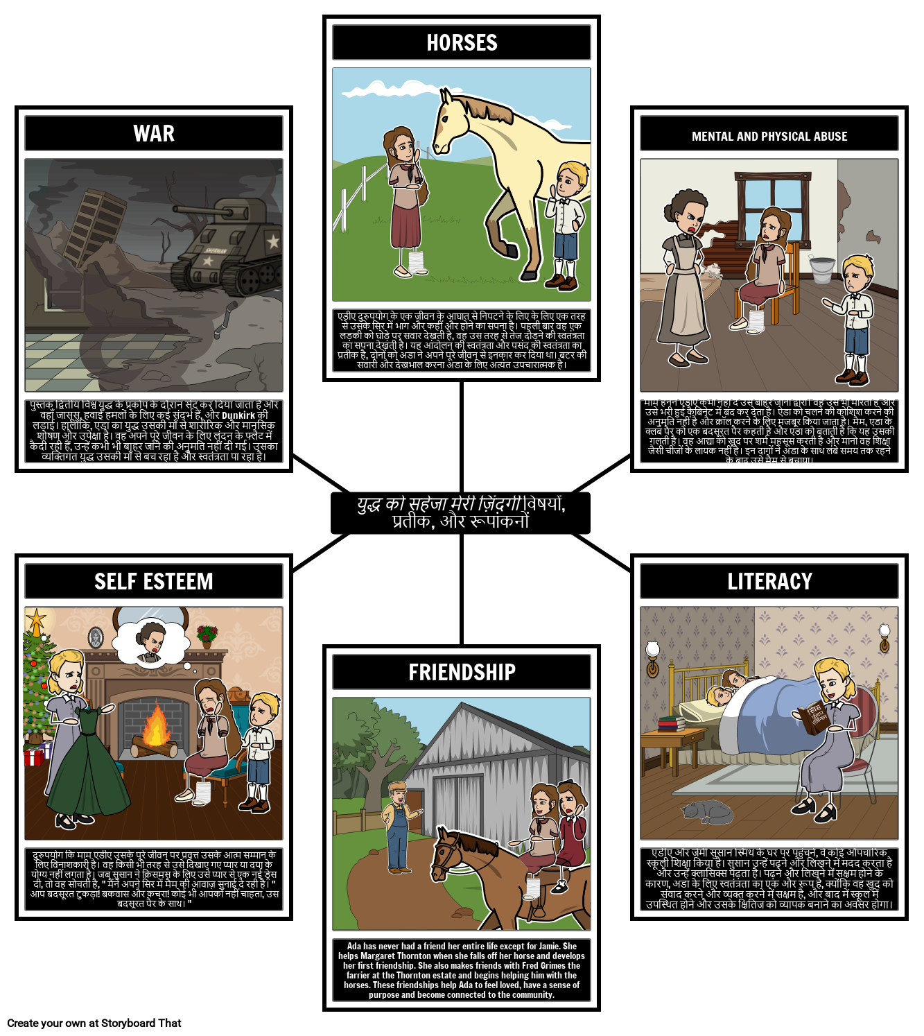 छात्र उपन्यास में मौजूद विभिन्न विषयों, प्रतीकों और रूपांकनों को ट्रैक कर सकते हैं और एक मकड़ी का नक्शा बना सकते हैं जो लेबल, परिभाषित और उन्हें दिखाता है।