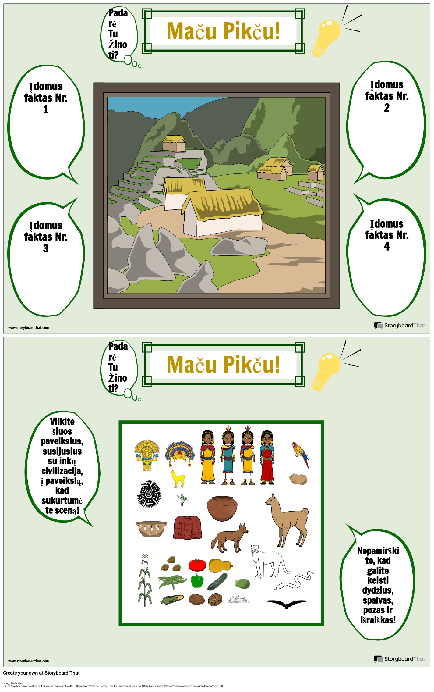 Vilkite šiuos paveikslus, susijusius su inkų civilizacija, į paveikslą, kad sukurtumėte sceną!