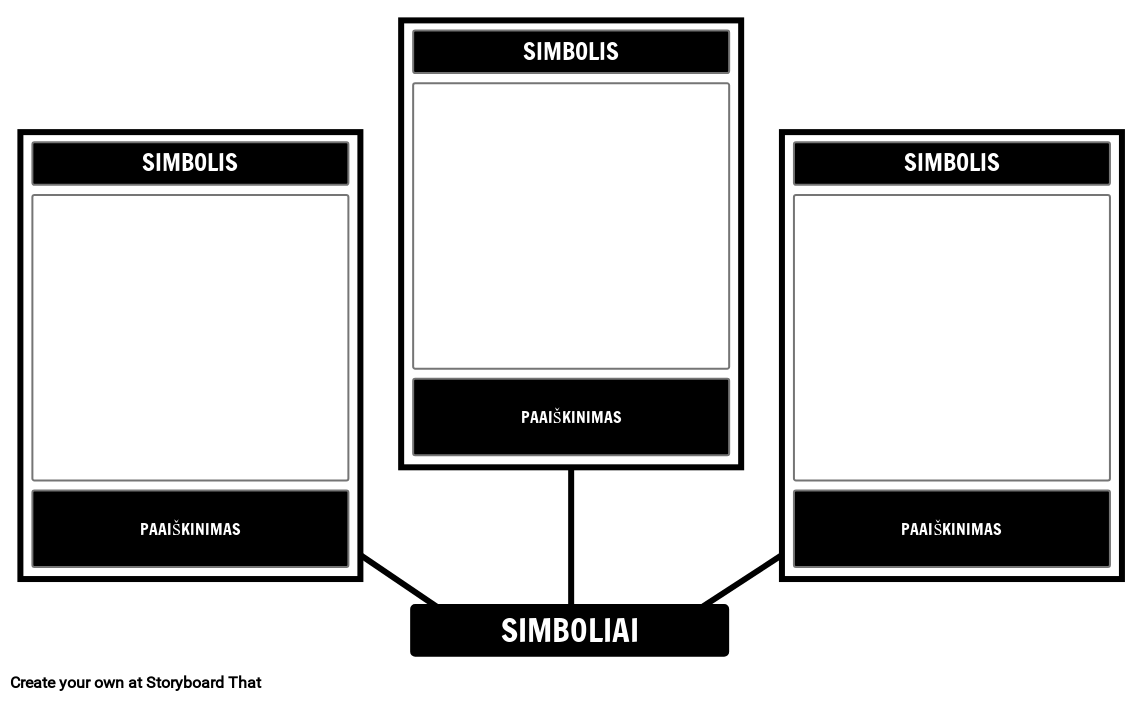Tuščias simbolizmo šablonas - atpažinkite tris simbolius ir pavaizduokite juos langeliuose. Nepamirškite pateikti paaiškinimo apačioje