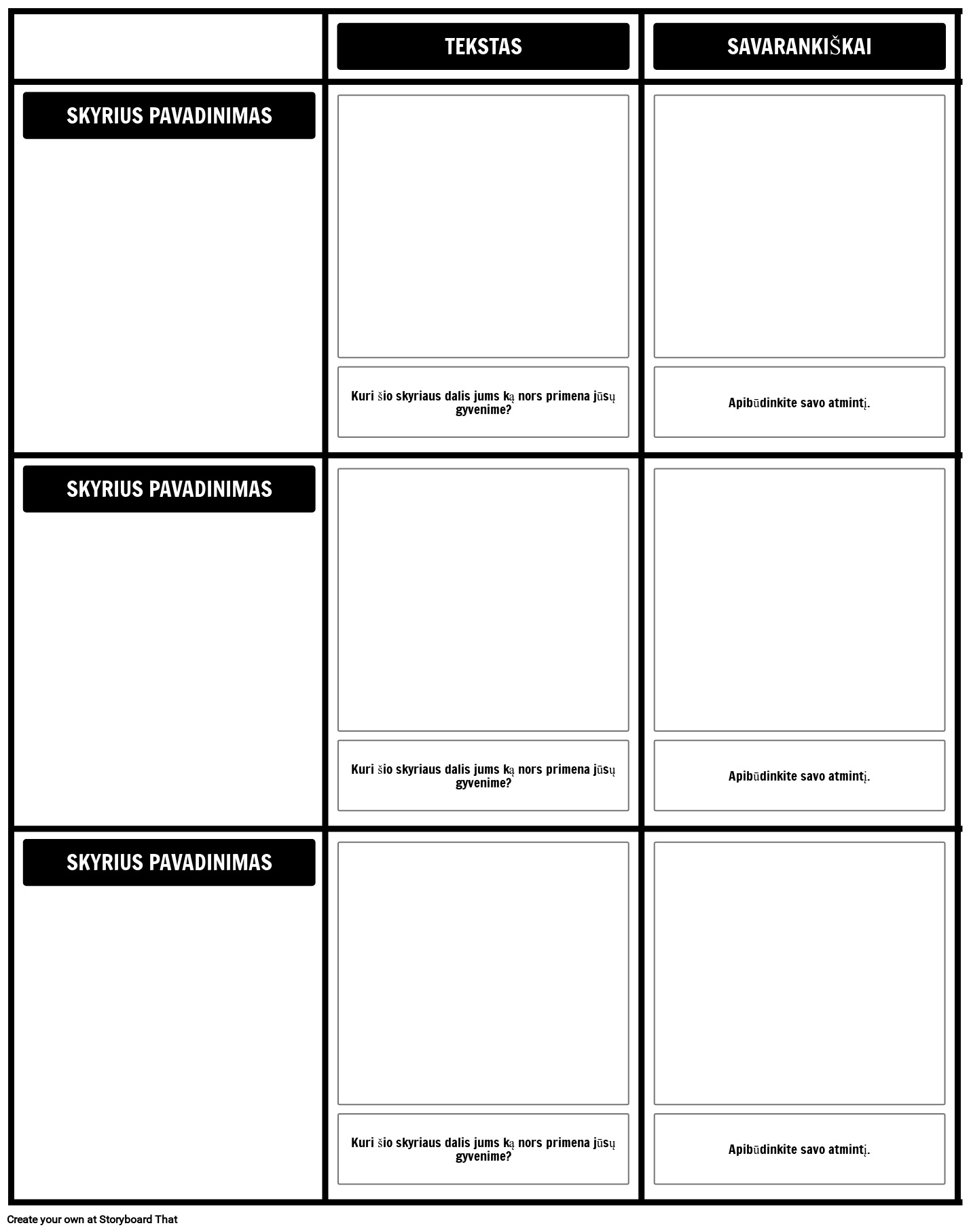 Tekstas į kiekvieno skyriaus saitus. Paprašykite mokinių tekste nustatyti momentą, prie kurio jie gali asmeniškai prisijungti