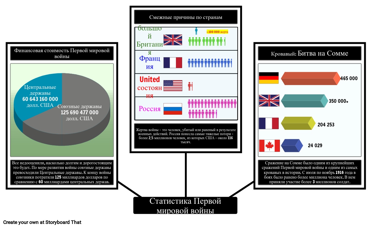 Все недооценили, насколько долгим и дорогостоящим это будет. По мере развития войны союзные державы превосходили Центральные державы. К концу войны союзники потратили 125 миллиардов долларов по сравнению с 60 миллиардами центральных держав.