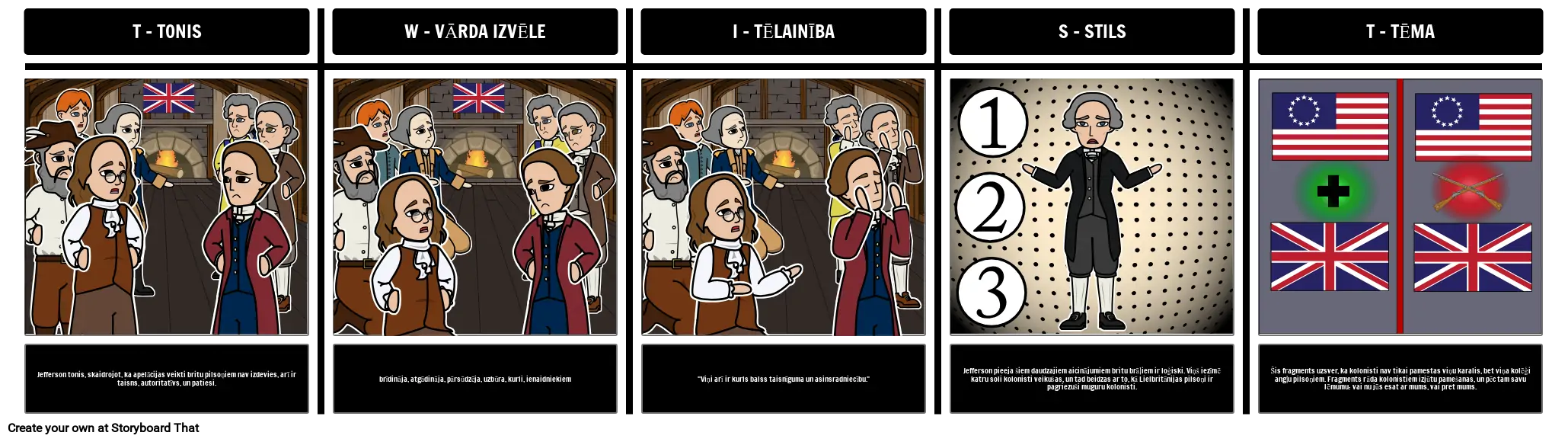 Veikt TWIST analīzi izvēli no The Neatkarības deklarācijas. Atcerieties, ka TWIST apzīmē Tone, Word Choice, attēli, Stils, tēma.
