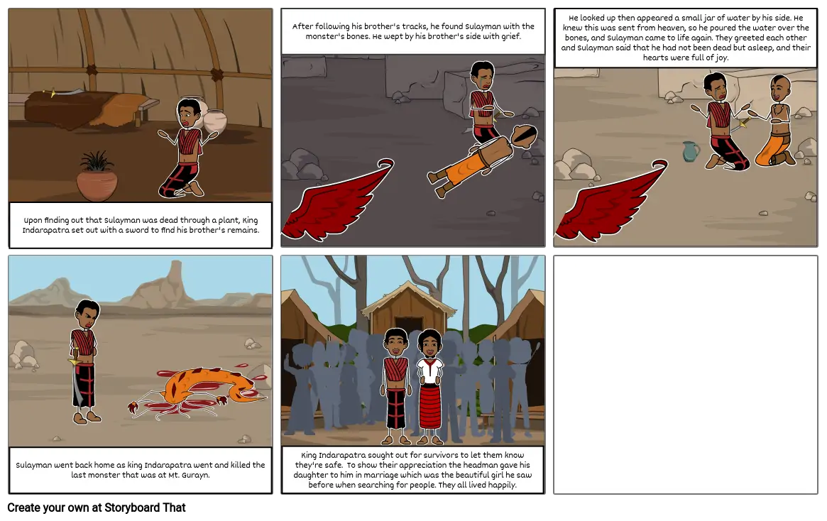 Upon finding out that Sulayman was dead through a plant, King Indarapatra set out with a sword to find his brother's remains.