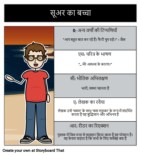 लेखक उसे 'चश्मा' के साथ 'वसा लड़का' के रूप में संदर्भित करता है वह बुद्धिमान और अभिनव है