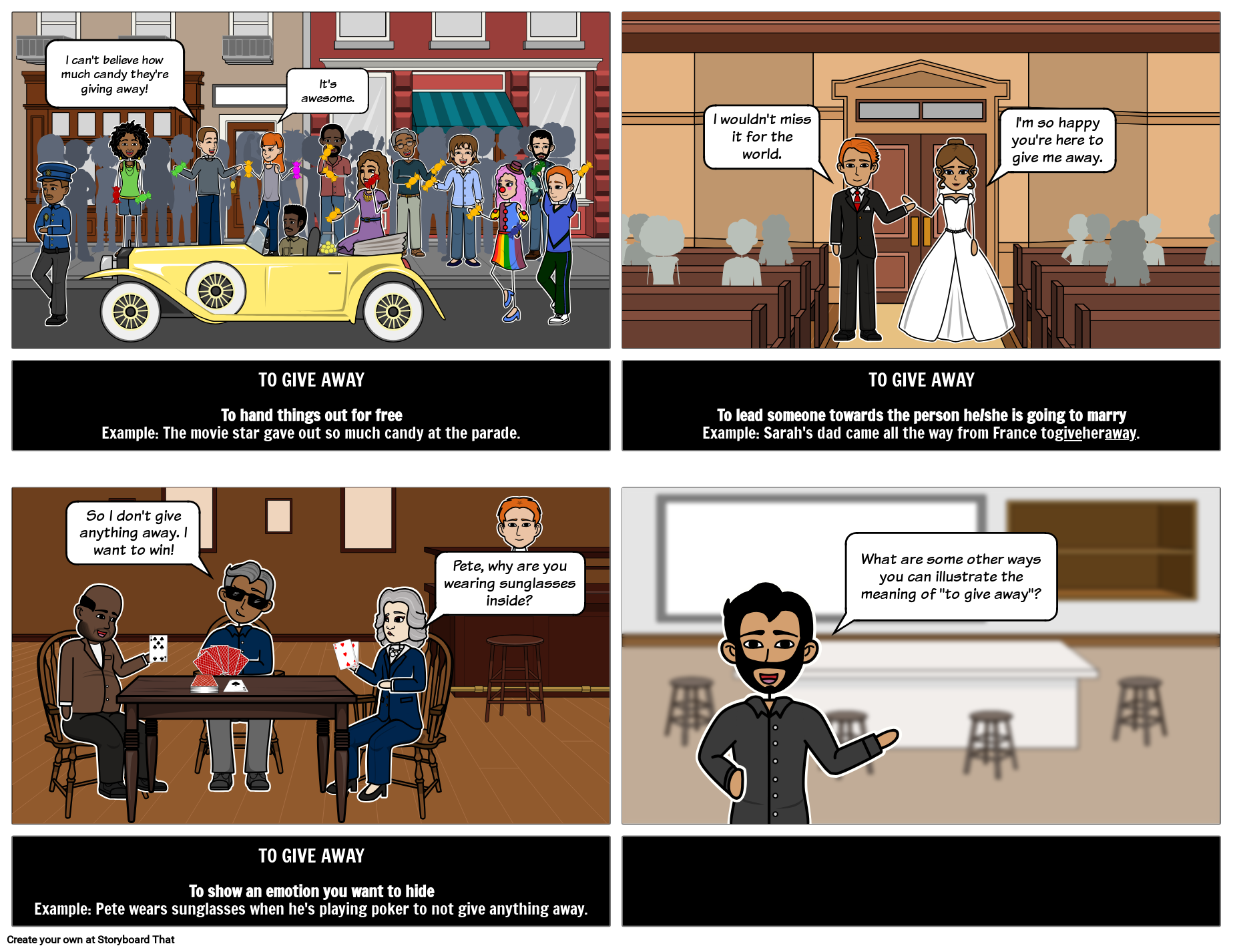What are some other ways you can illustrate the meaning of "to give away"?