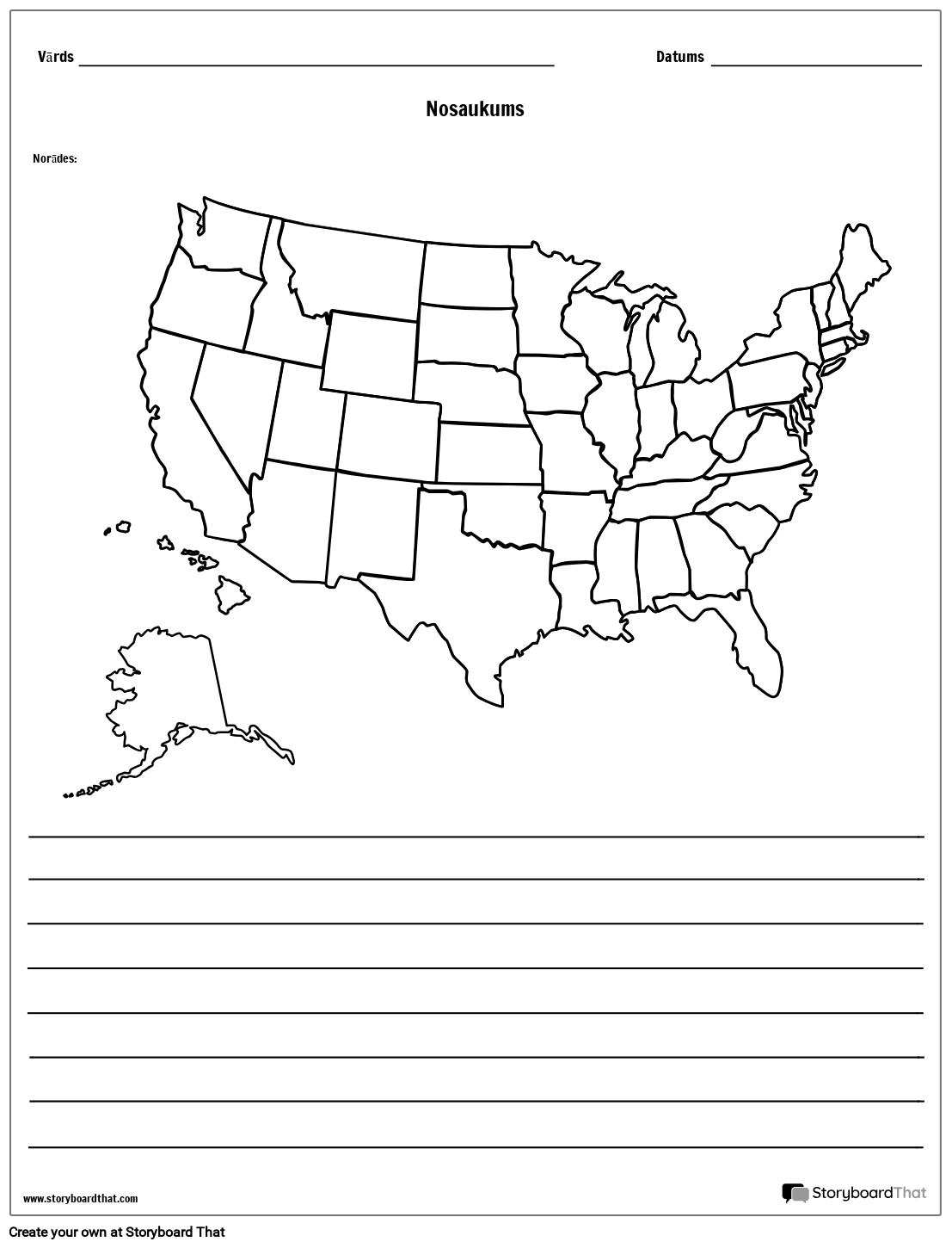 Tukša Amerikas Savienoto Valstu kartes darblapas veidne ar līnijām. Melnbalts ērtai drukāšanai un krāsošanai. | Vēstures darblapu veidnes | Pielāgotas karšu darblapas ir lieliski piemērotas vēsturei un sociālajām studijām!