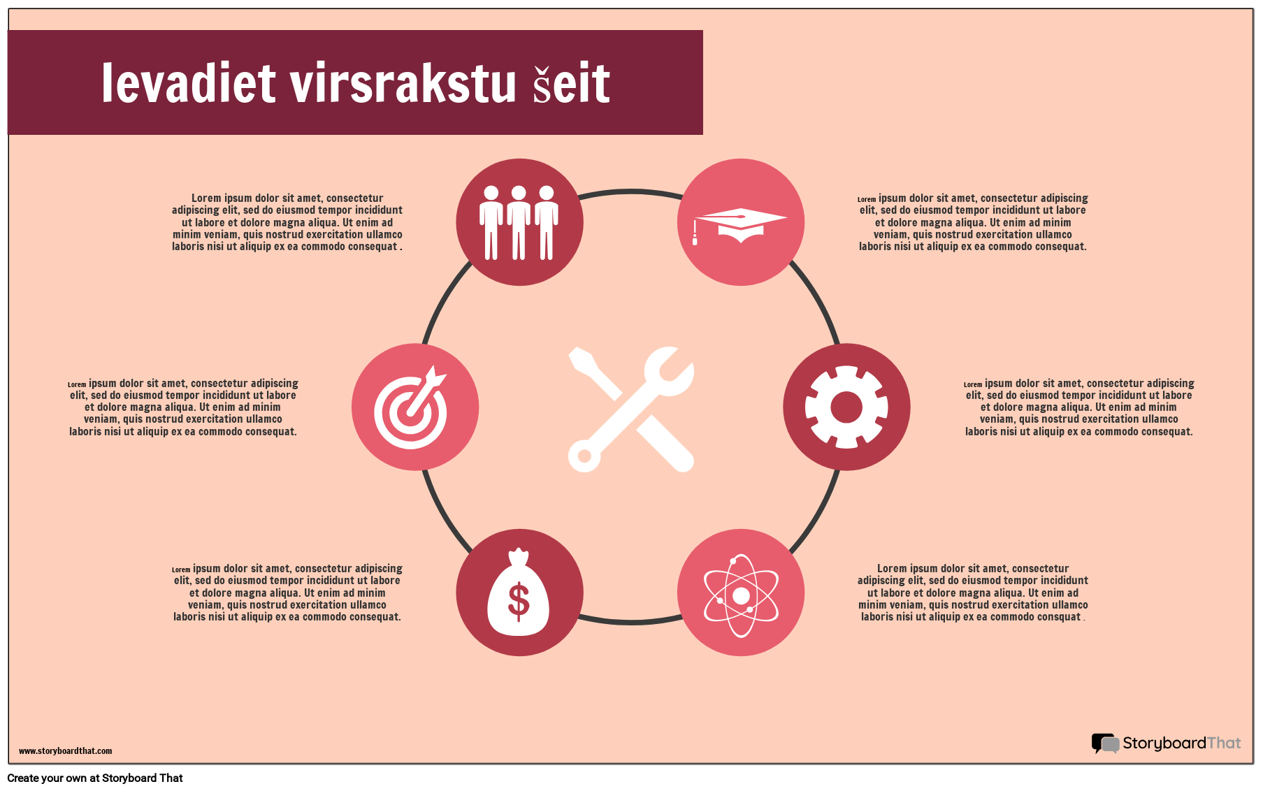 Pielāgojiet šo projektēšanas procesa infografiku, lai sadalītu lielu projektu pārvaldāmās daļās un atrisinātu dažādas problēmas.