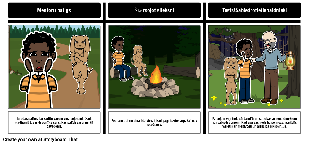 Ierodas palīgs, lai vadītu varoni viņa ceļojumā. Šajā gadījumā tas ir drosmīgs suns, kas palīdz varonim kā pavadonis.