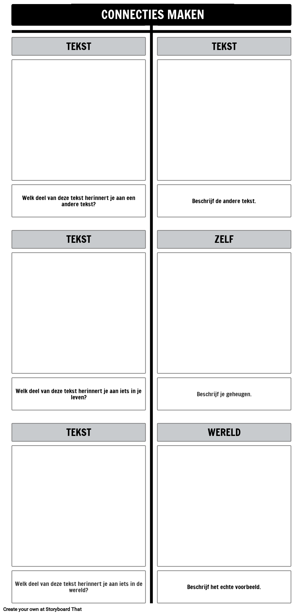 Tekstverbindingen T-kaartsjabloon | Laat studenten tekstverbindingen maken met een ander boek, met zichzelf en met de wereld
