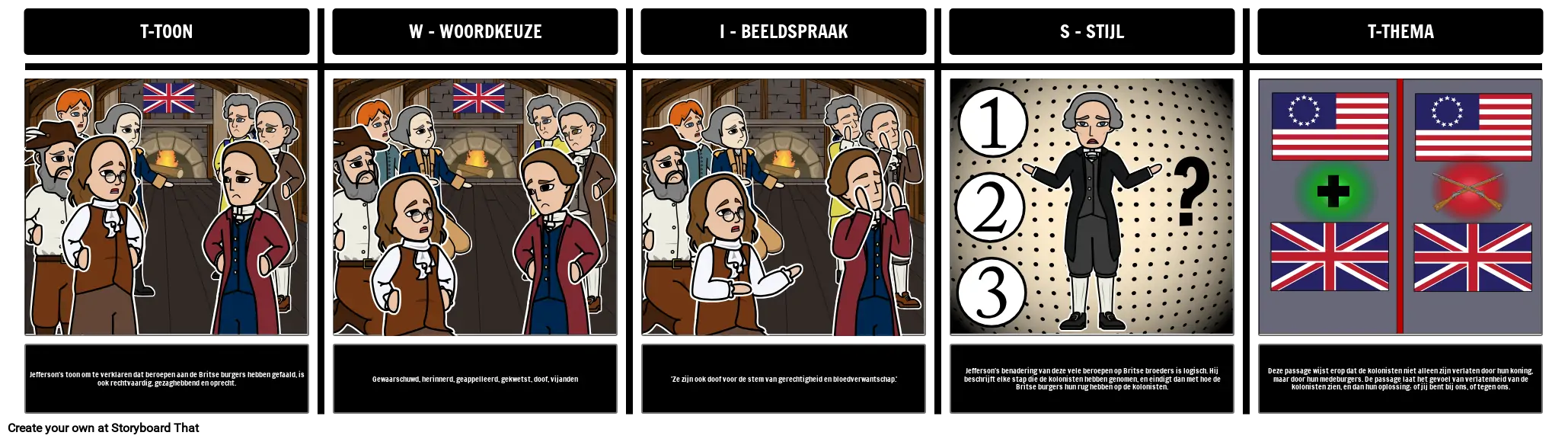 Voer een TWIST analyse van een selectie uit de Verklaring van Onafhankelijkheid. Vergeet niet dat TWIST staat voor Tone, Woordkeuze, Imagery, Style, Theme.
