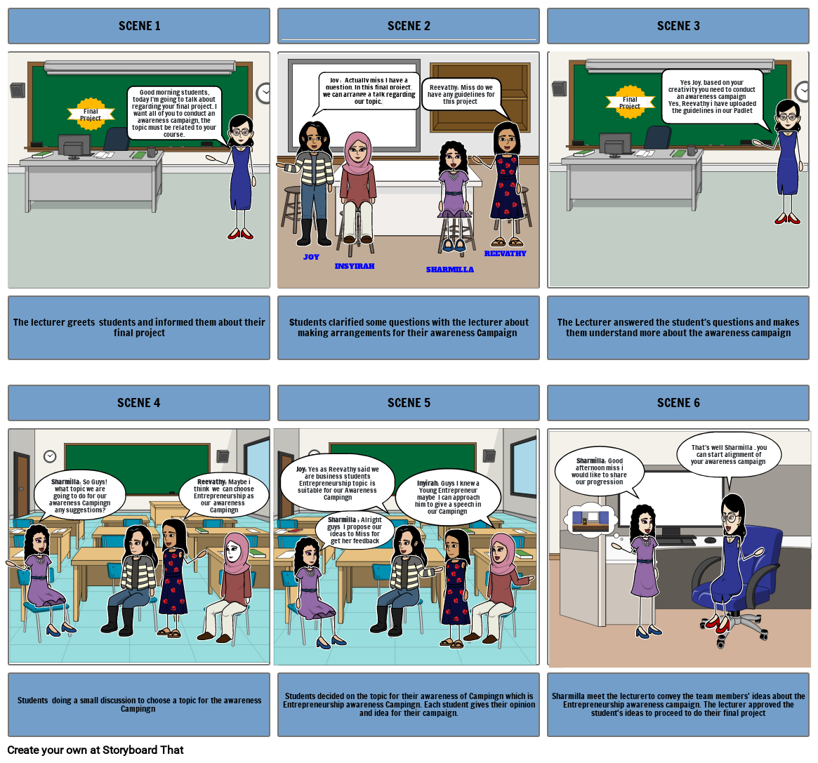 Sharmilla : Alright guys  I propose our ideas to Miss for get her feedback
