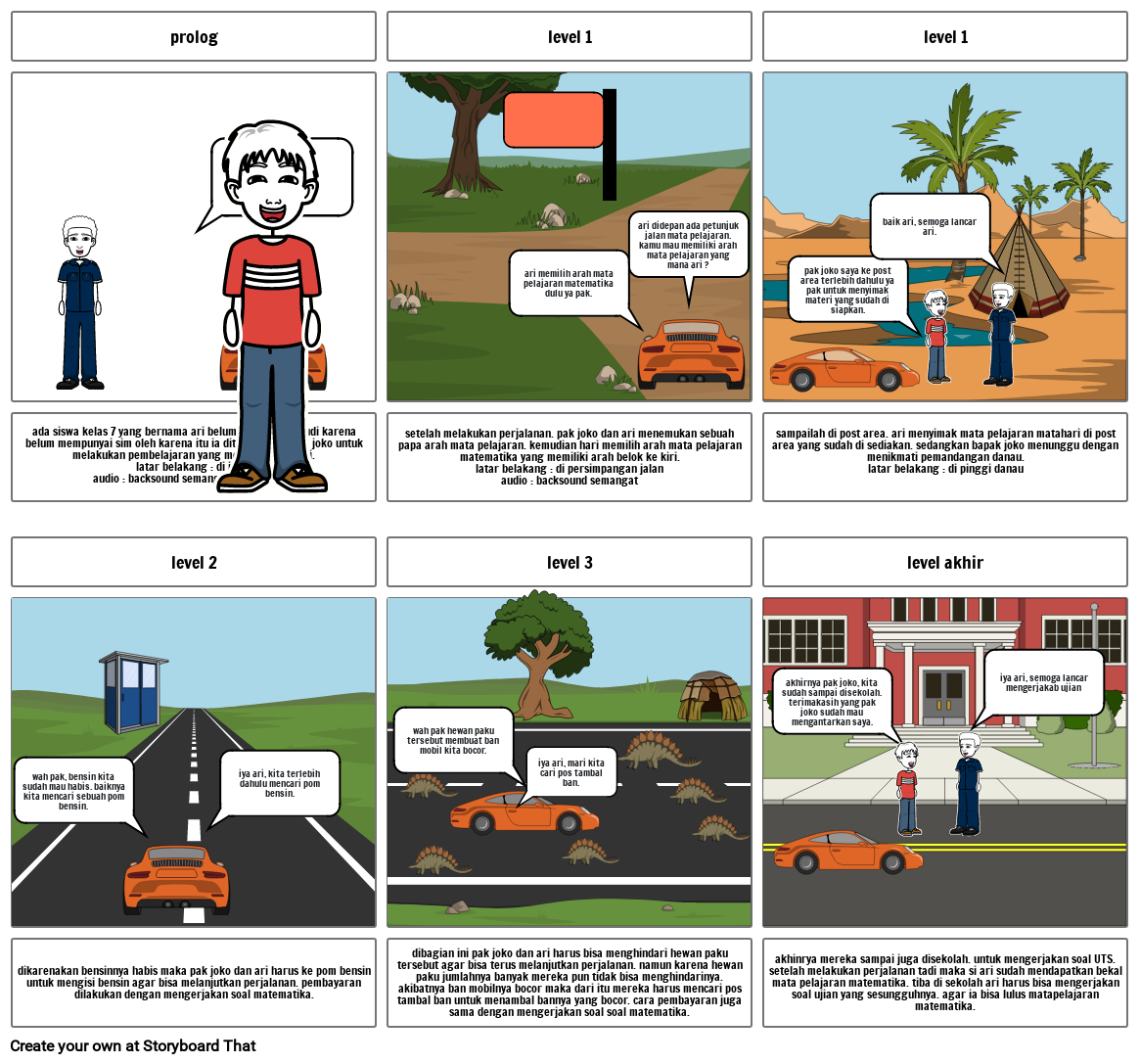 dibagian ini pak joko dan ari harus bisa menghindari hewan paku tersebut agar bisa terus melanjutkan perjalanan. namun karena hewan paku jumlahnya banyak mereka pun tidak bisa menghindarinya. akibatnya ban mobilnya bocor maka dari itu mereka harus mencari pos tambal ban untuk menambal bannya yang bocor. cara pembayaran juga sama dengan mengerjakan soal soal matematika.