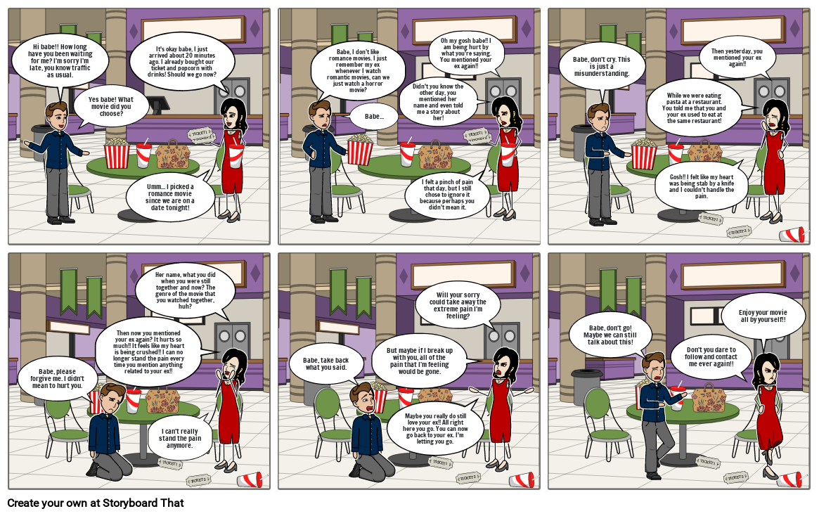 Babe, I don’t like romance movies. I just remember my ex whenever I watch romantic movies, can we just watch a horror movie?