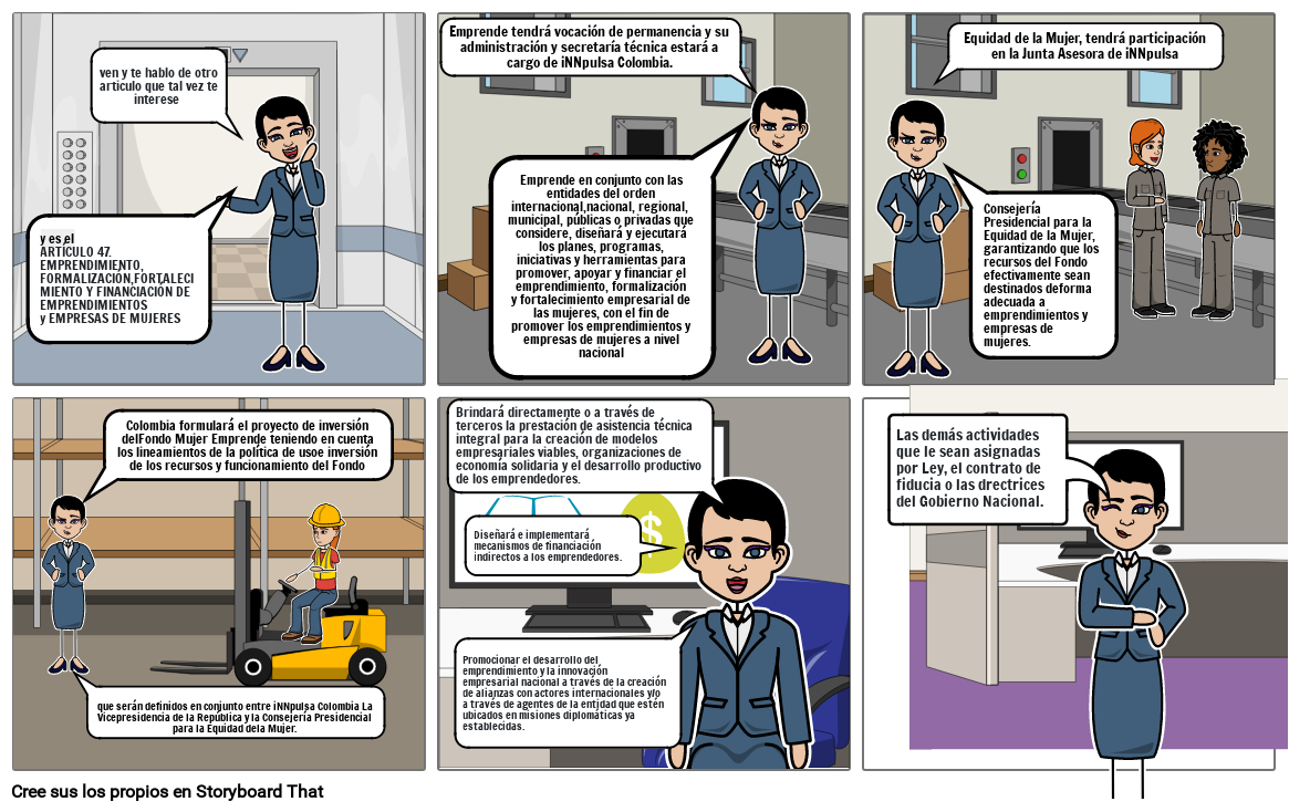 Colombia formulará el proyecto de inversión delFondo Mujer Emprende teniendo en cuenta los lineamientos de la política de usoe inversión de los recursos y funcionamiento del Fondo