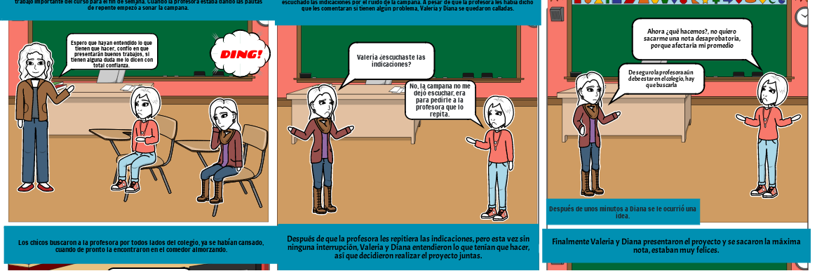 La profesora ya se había ido del salón, Valeria y Diana estaban preocupadas por que no habían escuchado las indicaciones por el ruido de la campana. A pesar de que la profesora les había dicho que les comentaran si tienen algún problema, Valeria y Diana se quedaron calladas.