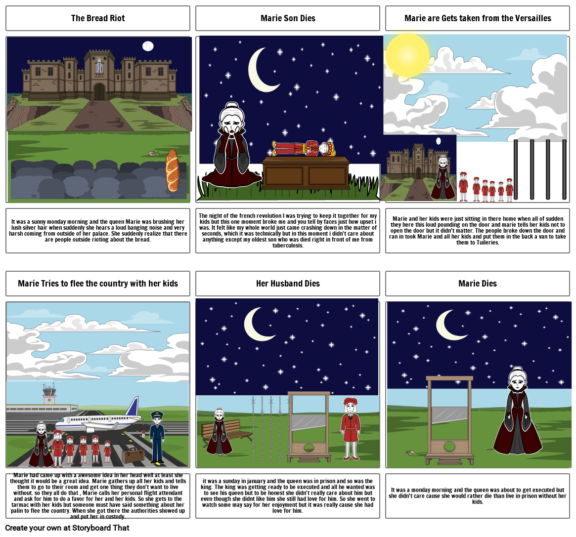 It was a sunny monday morning and the queen Marie was brushing her lush silver hair when suddenly she hears a loud banging noise and very harsh coming from outside of her palace. She suddenly realize that there are people outside rioting about the bread.