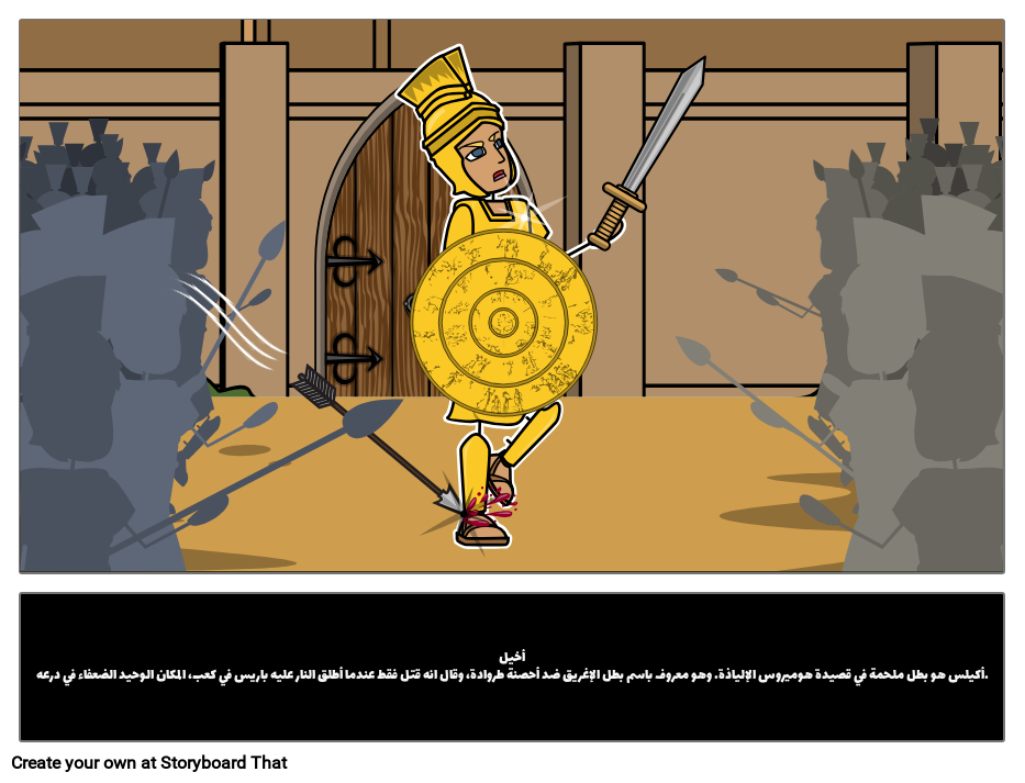 أخيلأكيلس هو بطل ملحمة في قصيدة هوميروس الإلياذة. وهو معروف باسم بطل الإغريق ضد أحصنة طروادة، وقال انه قتل فقط عندما أطلق النار عليه باريس في كعب، المكان الوحيد الضعفاء في درعه.