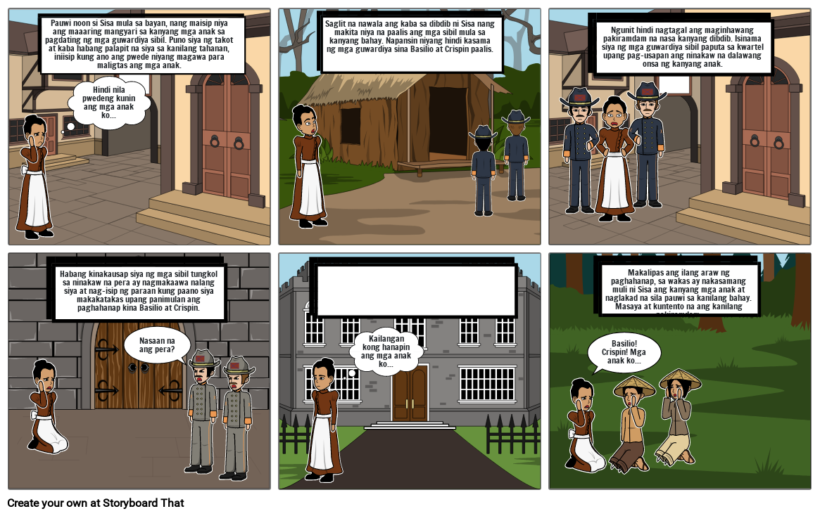Makalipas ang ilang araw ng paghahanap, sa wakas ay nakasamang muli ni Sisa ang kanyang mga anak at naglakad na sila pauwi sa kanilang bahay. Masaya at kuntento na ang kanilang pakiramdam.
