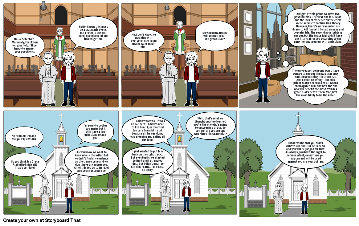 Alright, at this point, we have two possibilities. The first one is suicide, and the lack of evidence on the crime scene seems to confirm this theory. However, there's no reason for His Grace to kill himself: he had an easy and peaceful life. The second possibility is murder, but His Grace Rial didn't have any financial issues according to the bank nor any problem with Christians.