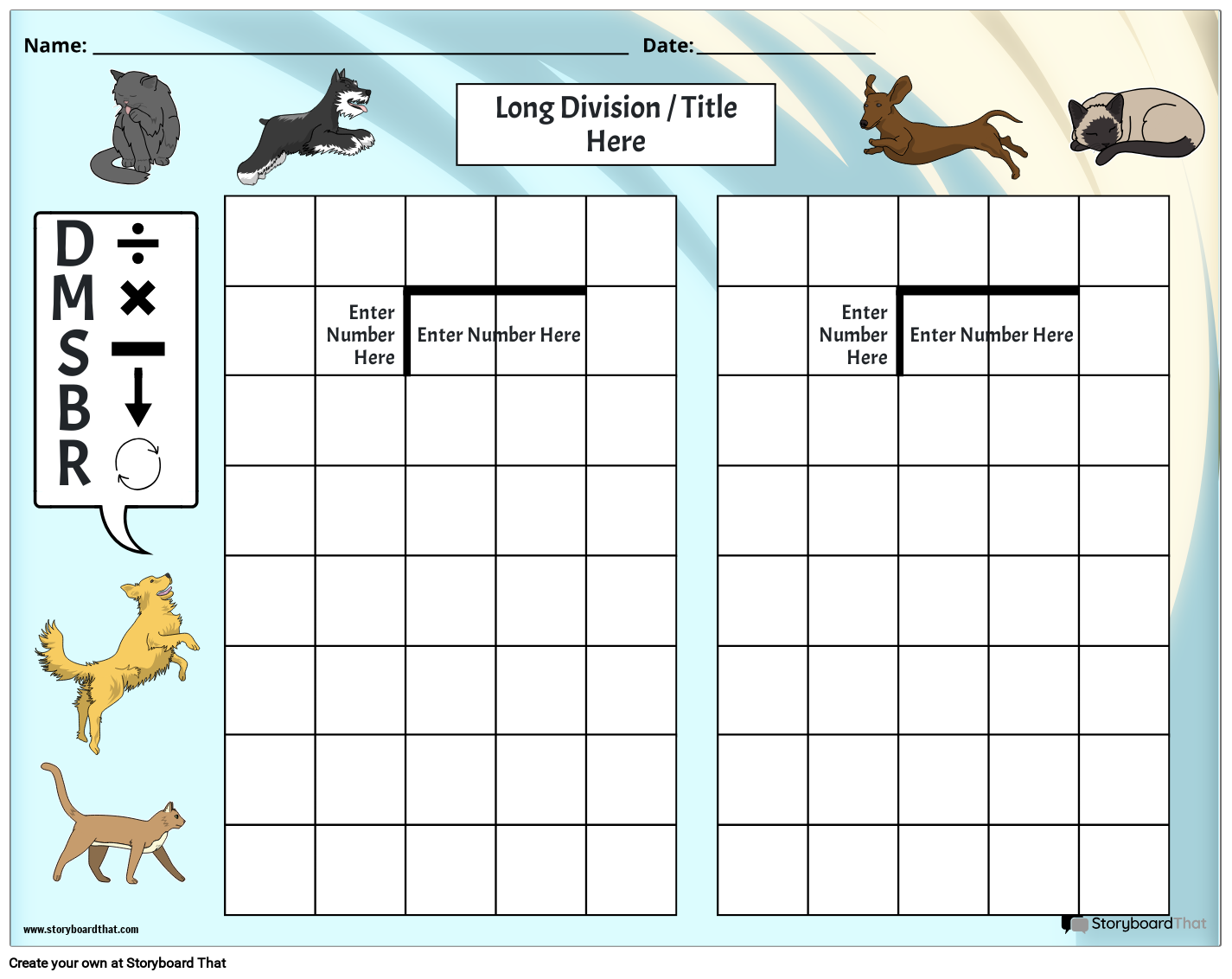 लांग डिवीजन वर्कशीट टेम्पलेट्स | छात्रों के लिए कस्टम गणित कार्यपत्रक बनाएं!
