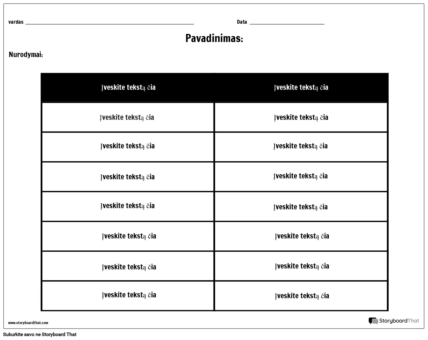 Lentelė – 2 Stulpeliai, 7 Eilutės
