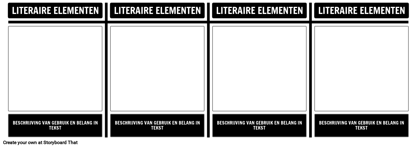 Literaire elementen T-Chart - Identificeer en verbeeld literaire elementen in de tekst. Voeg een beschrijving van de betekenis toe.
