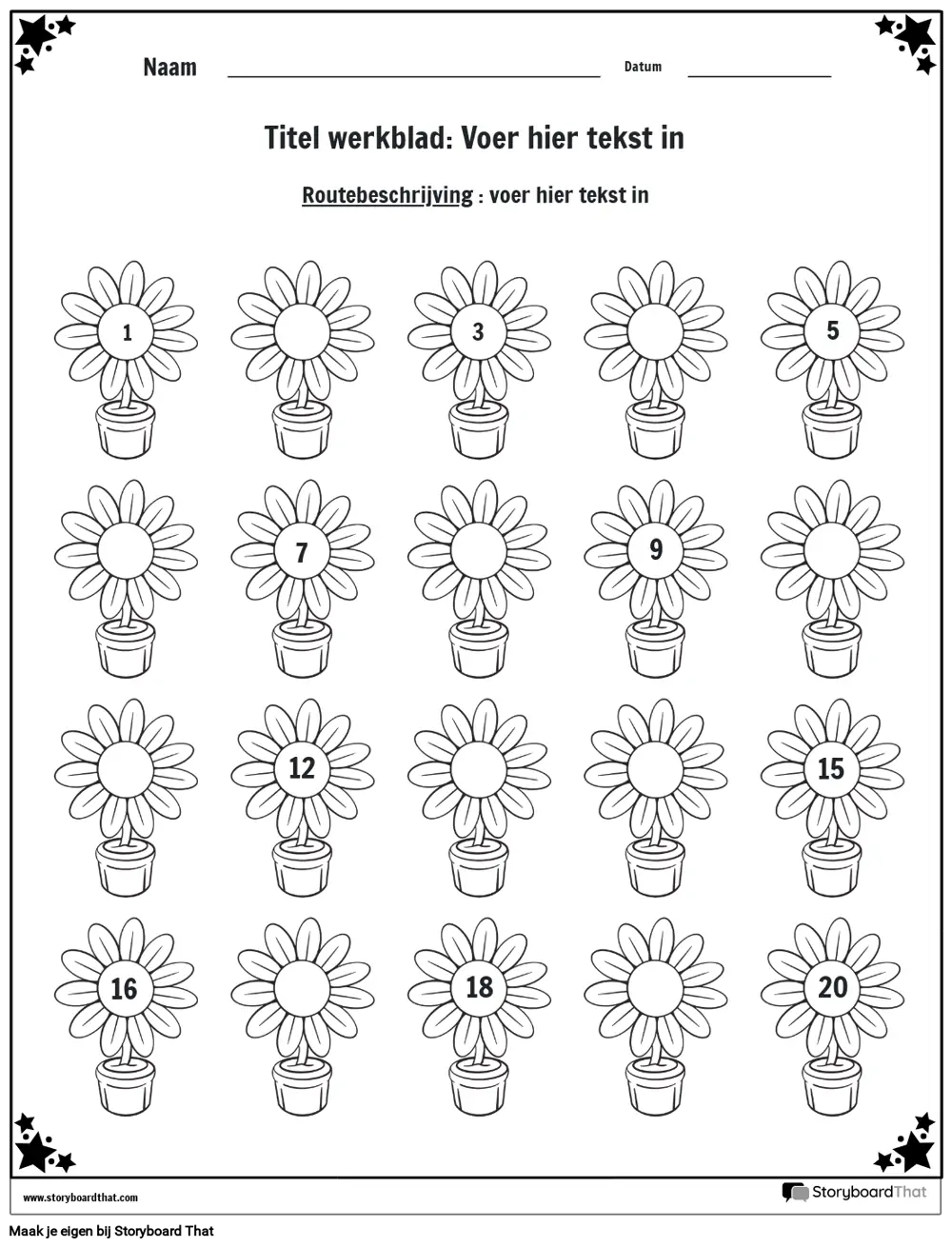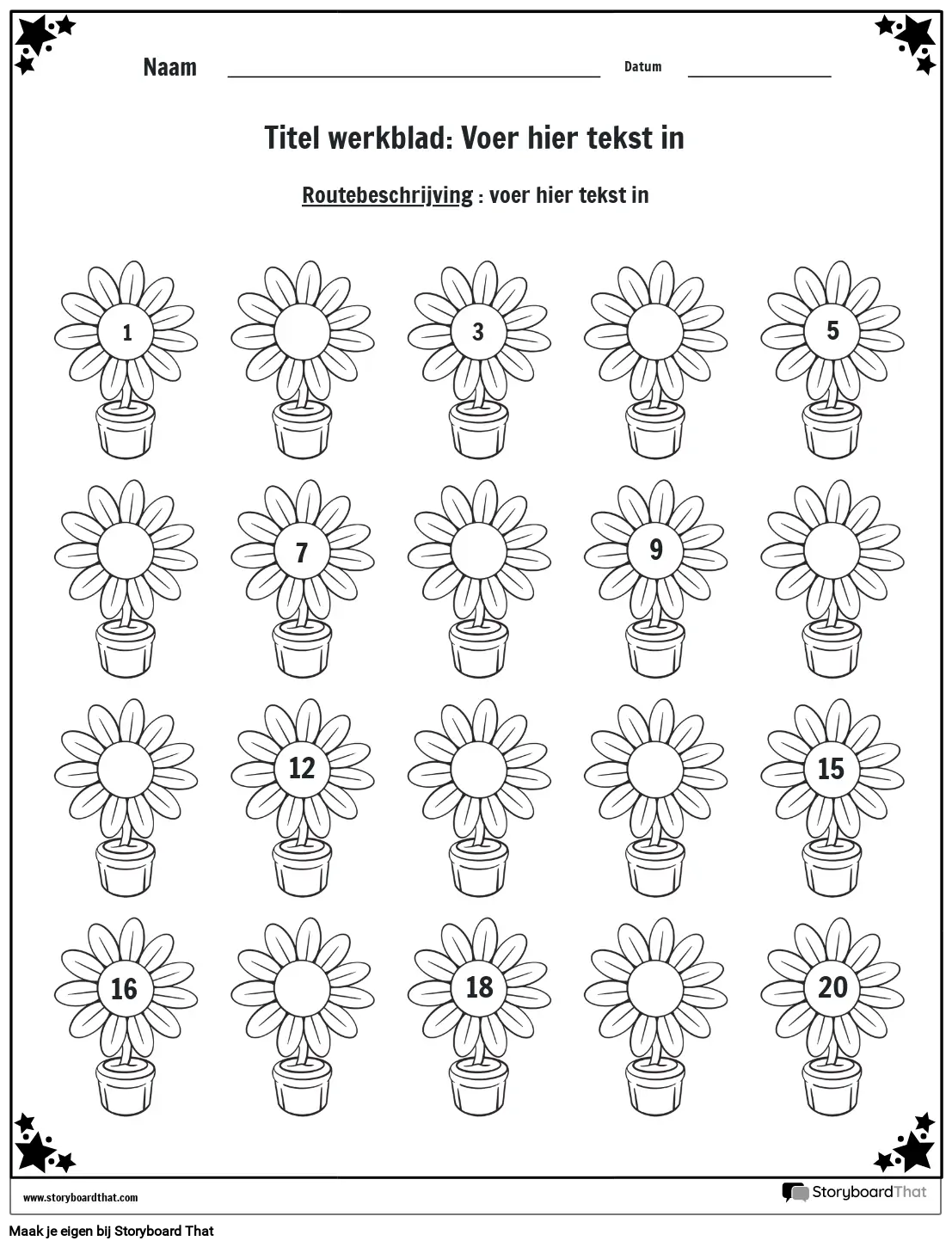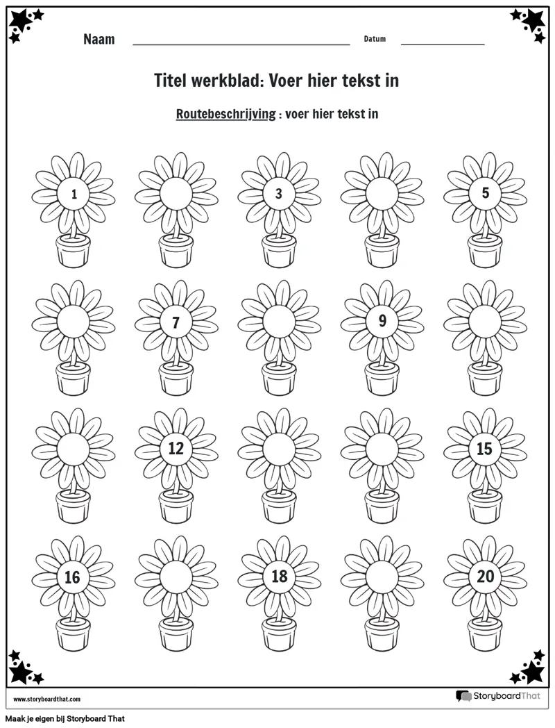 Ontbrekende getallen werkblad met bloemen (zwart-wit)