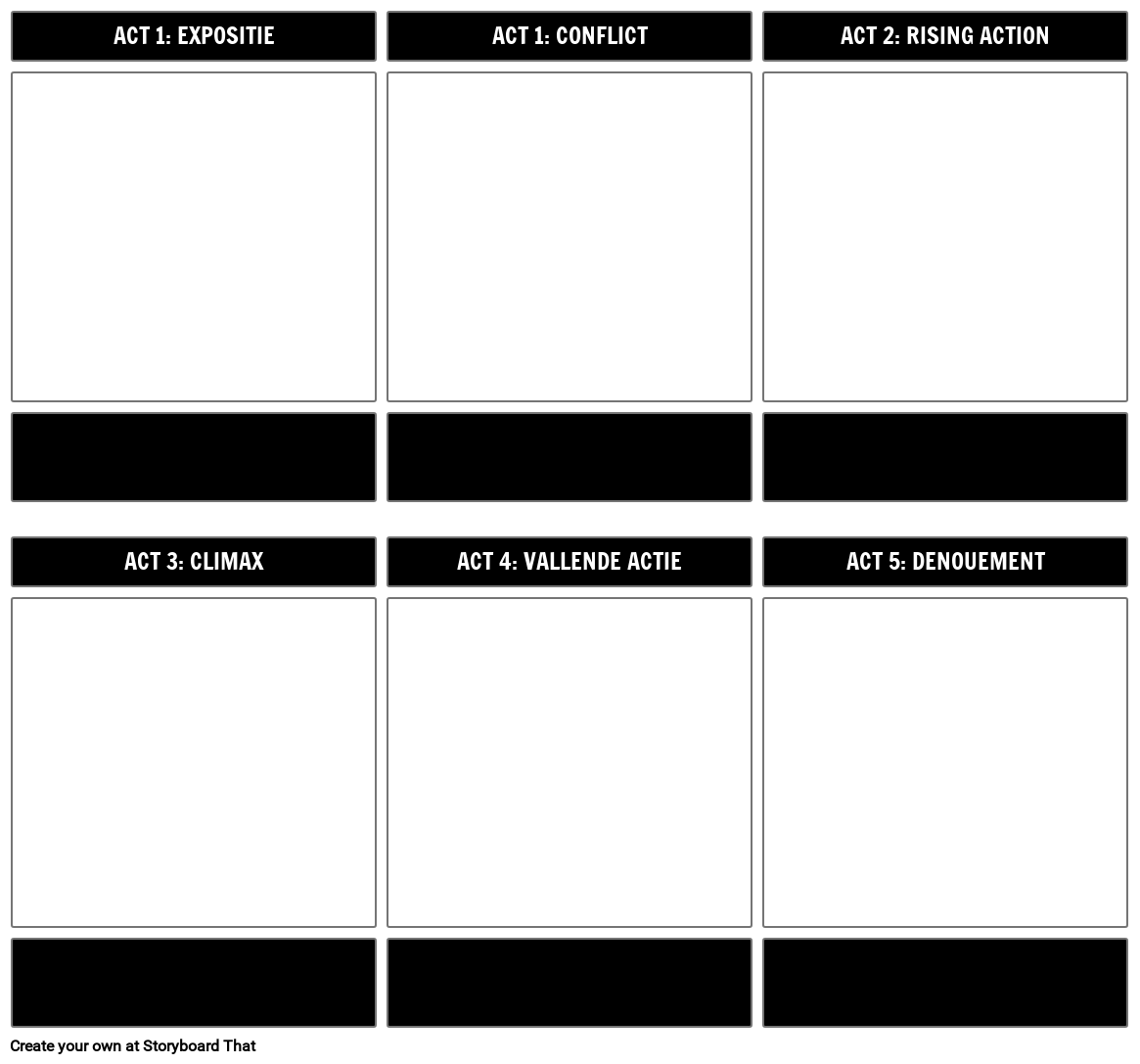 Structuursjabloon met vijf handelingen | Laat de studenten de belangrijkste punten van elke act in Shakespearean-toneelstukken identificeren en illustreren met behulp van de vijf-actstructuur!