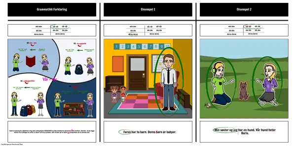 Husk at possessive adjektiver enig med substantivet POSSESSED og ikke besitteren (personen som innehar). Ovenfor, vil du legge merke til at utvalget av ordet er basert off de to jentene, men formen på er basert av elementene de to jentene eier.