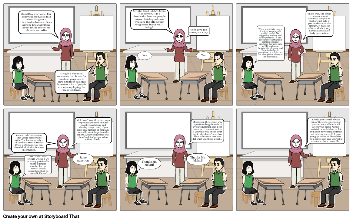 Alright! Good job Mr. Miko. It is correct, it is a chemical substance people misuse but do you know what are the effects that drug cause in our well-being?#160;