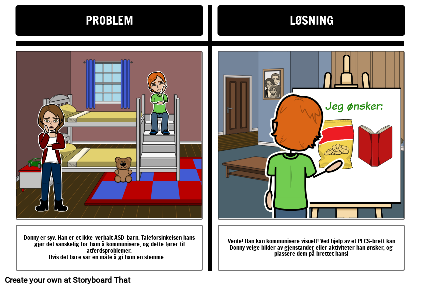 Ved å bruke Storyboard That kan lærere og foreldre lage bedre bildetavler. Sammenlignet med variasjonen av gjenstander som er tilgjengelige for tradisjonelle tavler, er Storyboard That -alternativene nesten uendelige. Pluss, bildetavler med Storyboard That kan enkelt tilpasses. Med hundrevis av scener, karakterer og tusenvis av bilder i søk , er det alltid et bilde som kan brukes.