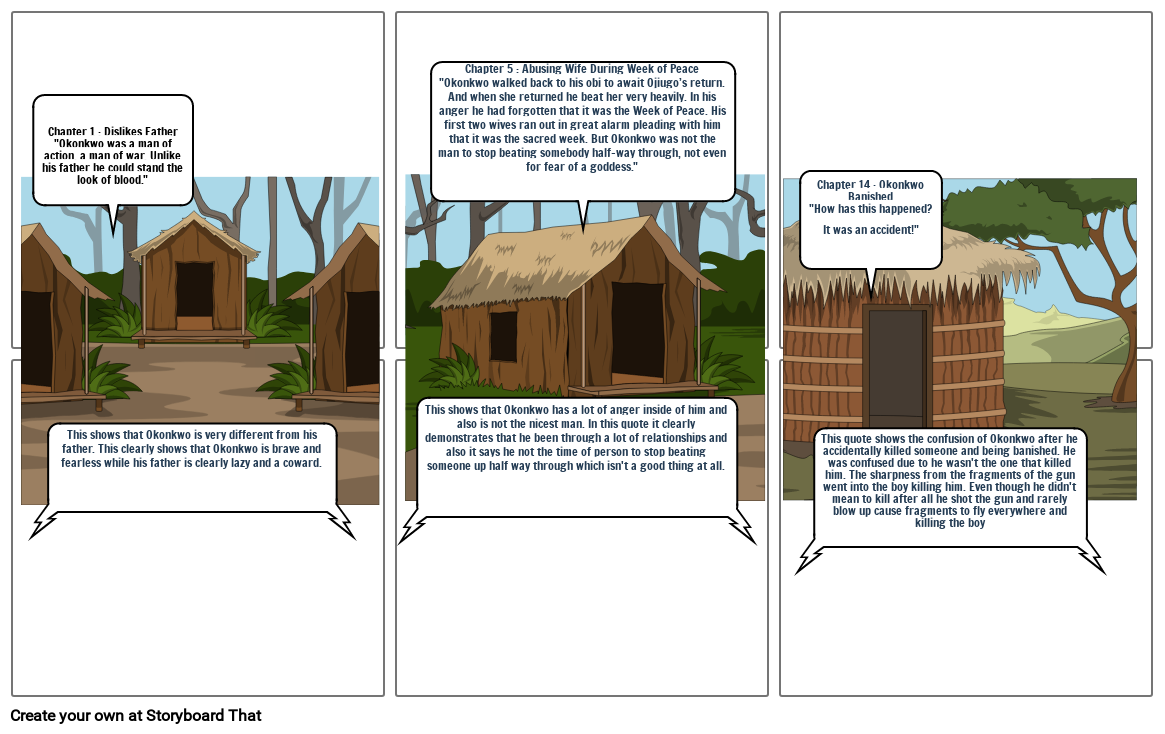 Chapter 1 : Dislikes Father"Okonkwo was a man of action, a man of war. Unlike his father he could stand the look of blood."