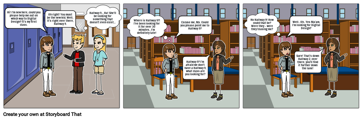 Oh right! You must be the new kid. Well, it's right over there, Hallway 9.