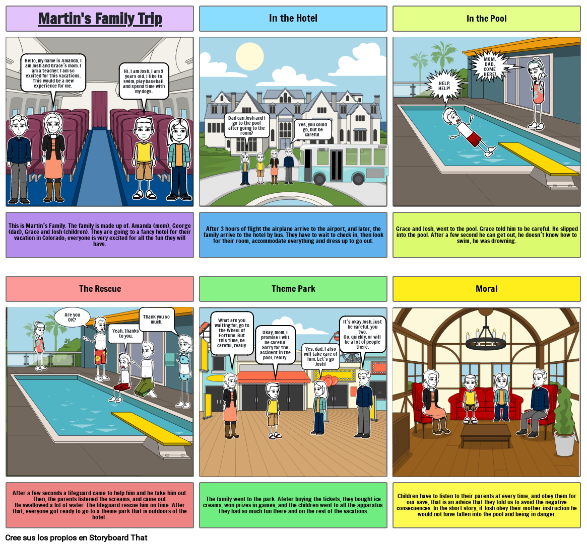 This is Martin´s Family. The family is made up of: Amanda (mom), George (dad), Grace and Josh (children). They are going to a fancy hotel for their vacation in Colorado; everyone is very excited for all the fun they will have.