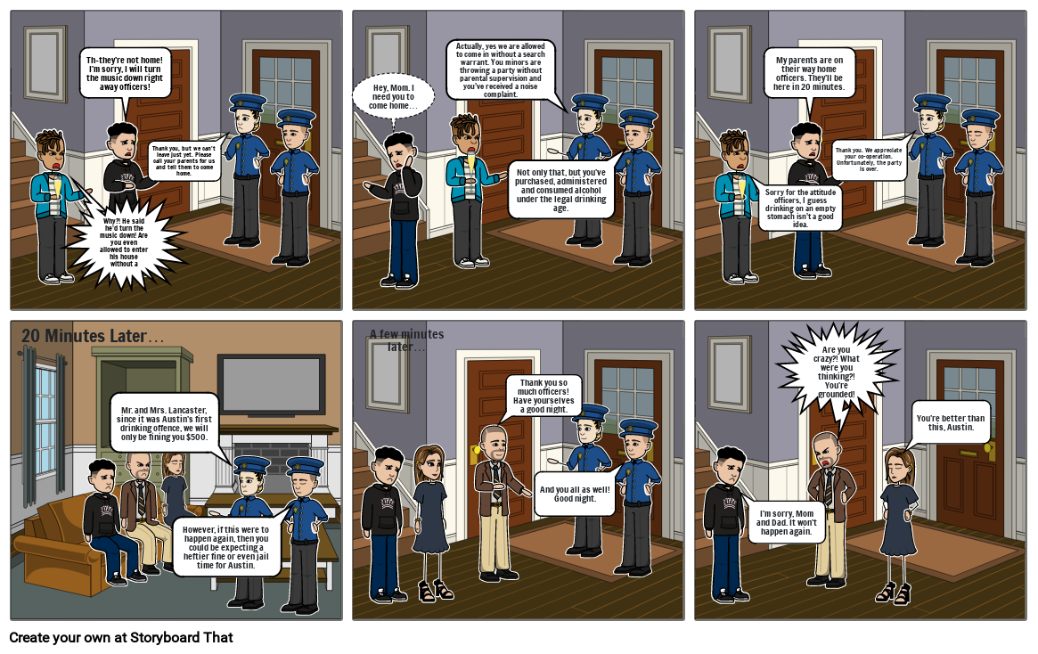 Mr. and Mrs. Lancaster, since it was Austin’s first drinking offence, we will only be fining you $500.