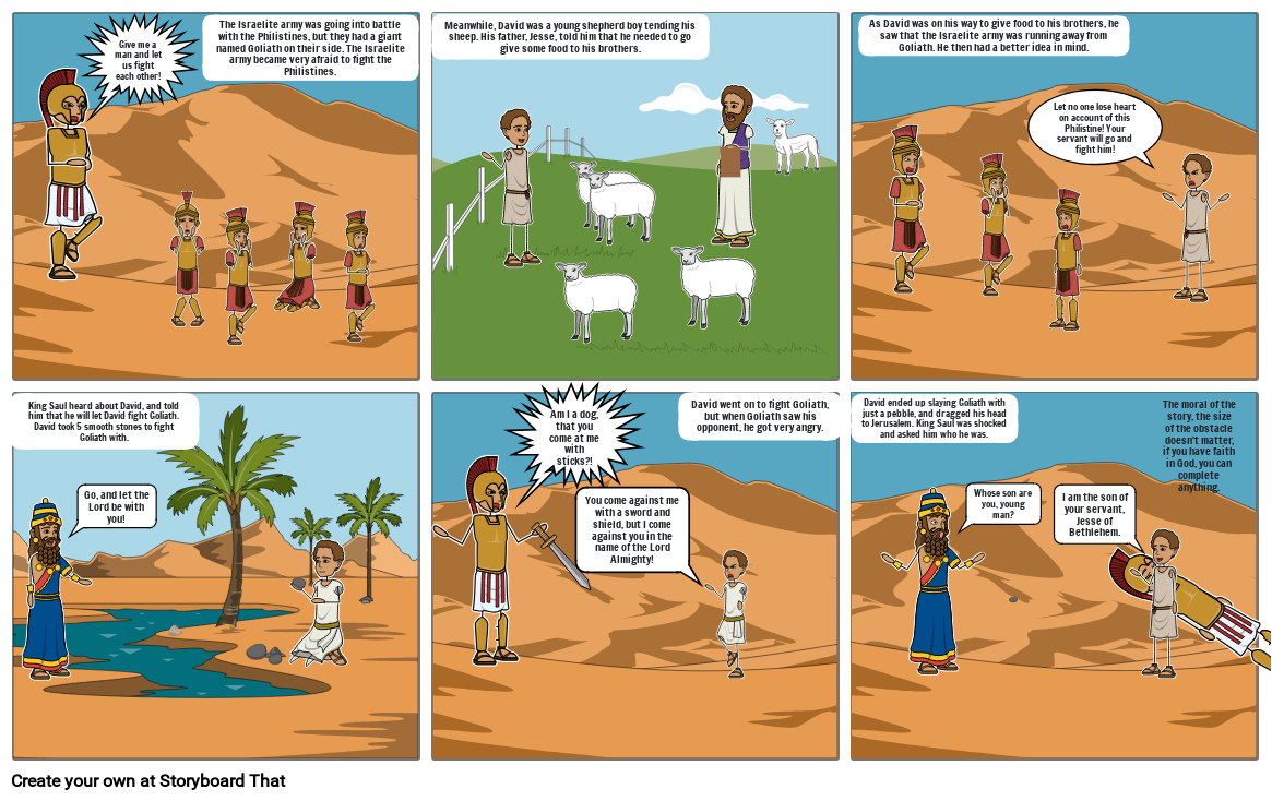 Meanwhile, David was a young shepherd boy tending his sheep. His father, Jesse, told him that he needed to go give some food to his brothers.