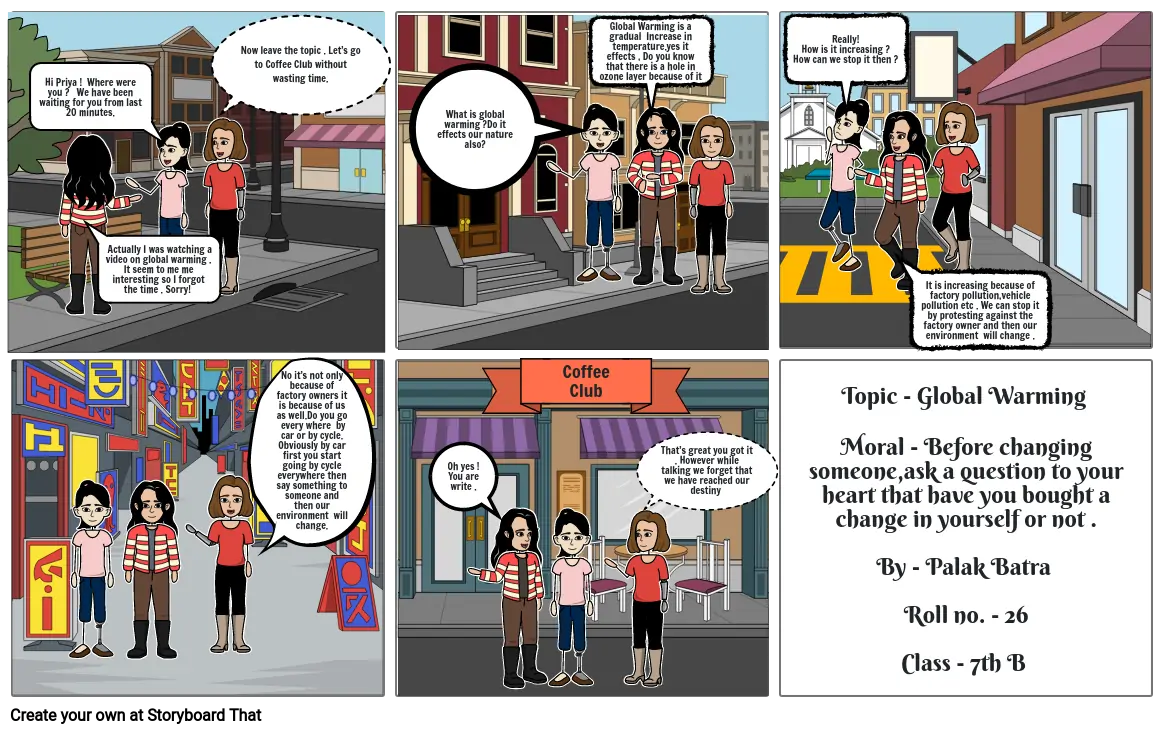 Topic - Global Warming Moral - Before changing someone,ask a question to your heart that have you bought a change in yourself or not .By - Palak Batra Roll no. - 26Class - 7th B