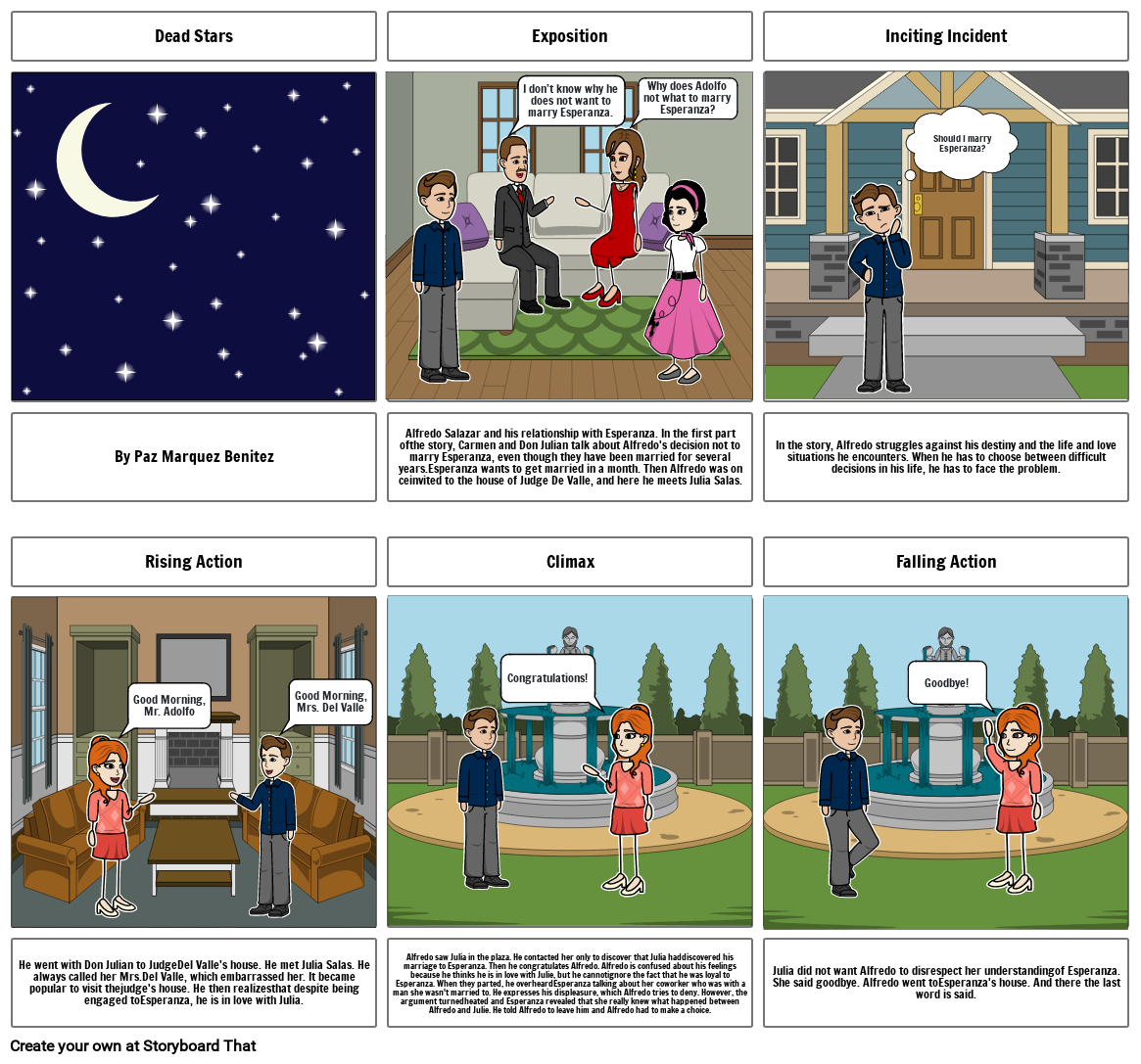 Alfredo Salazar and his relationship with Esperanza. In the first part ofthe story, Carmen and Don Julian talk about Alfredo's decision not to marry Esperanza, even though they have been married for several years.Esperanza wants to get married in a month. Then Alfredo was on ceinvited to the house of Judge De Valle, and here he meets Julia Salas.