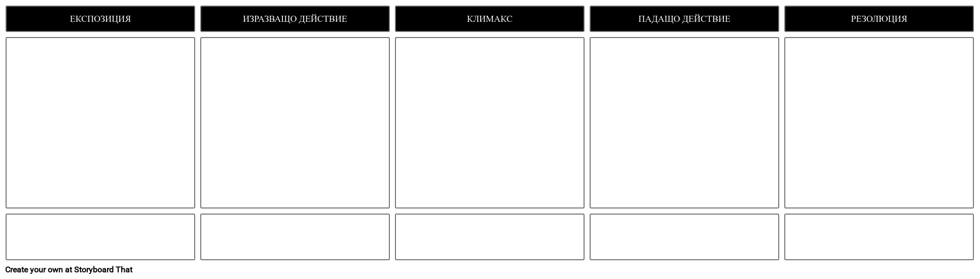 Шаблон за графика - 5 клетки | Накарайте учениците да идентифицират и изобразят ключови събития за всяка от петте стъпки на сюжетната диаграма: експозиция, нарастващо действие, кулминация, падащо действие и резолюция