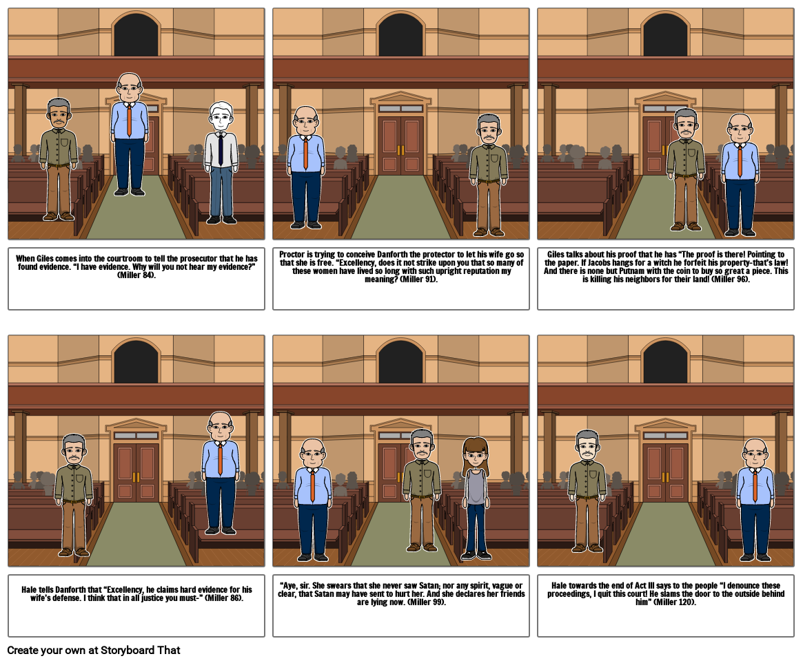 Hale tells Danforth that “Excellency, he claims hard evidence for his wife’s defense. I think that in all justice you must-” (Miller 86).