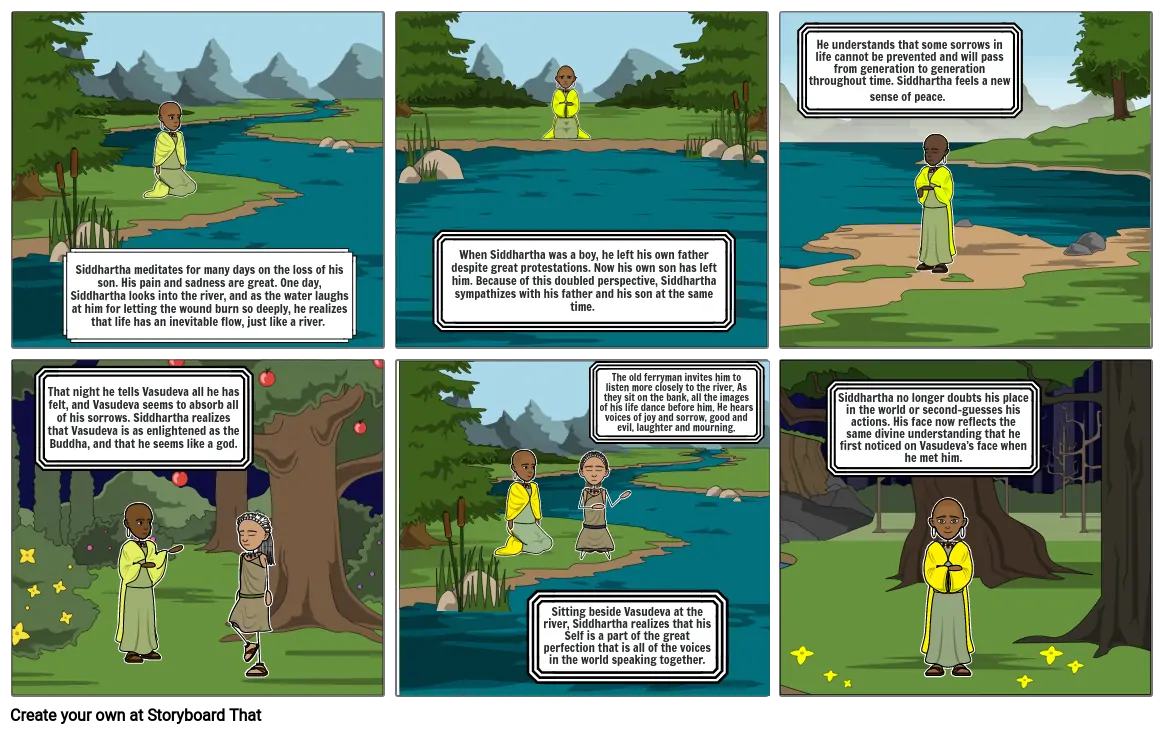 He understands that some sorrows in life cannot be prevented and will pass from generation to generation throughout time. Siddhartha feels a new sense of peace.