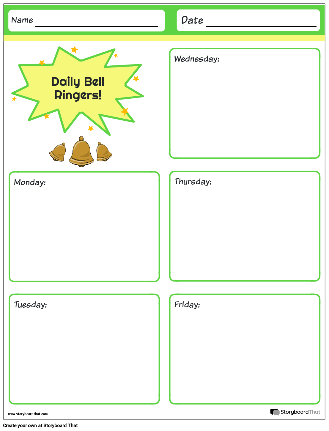 बेल रिंगर वर्कशीट टेम्प्लेट | छात्रों के लिए कस्टम घंटी बजने वाले संकेत बनाएं