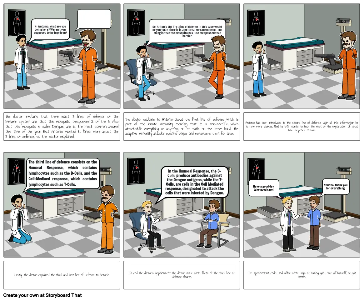 The doctor explains that there exist 3 lines of defense of the immune system and that this mosquito trespassed 2 of the 3. Also that this mosquito is called Dengue, and is the most common around this time of the year. But Antonio wanted to know more about the 3 lines of defense, so the doctor explained.