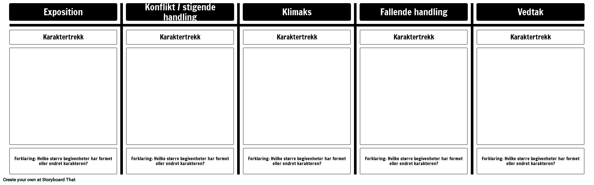 Karakterutviklingsmal for en roman eller historie. Bruk denne malen til å spore karakterutvikling.