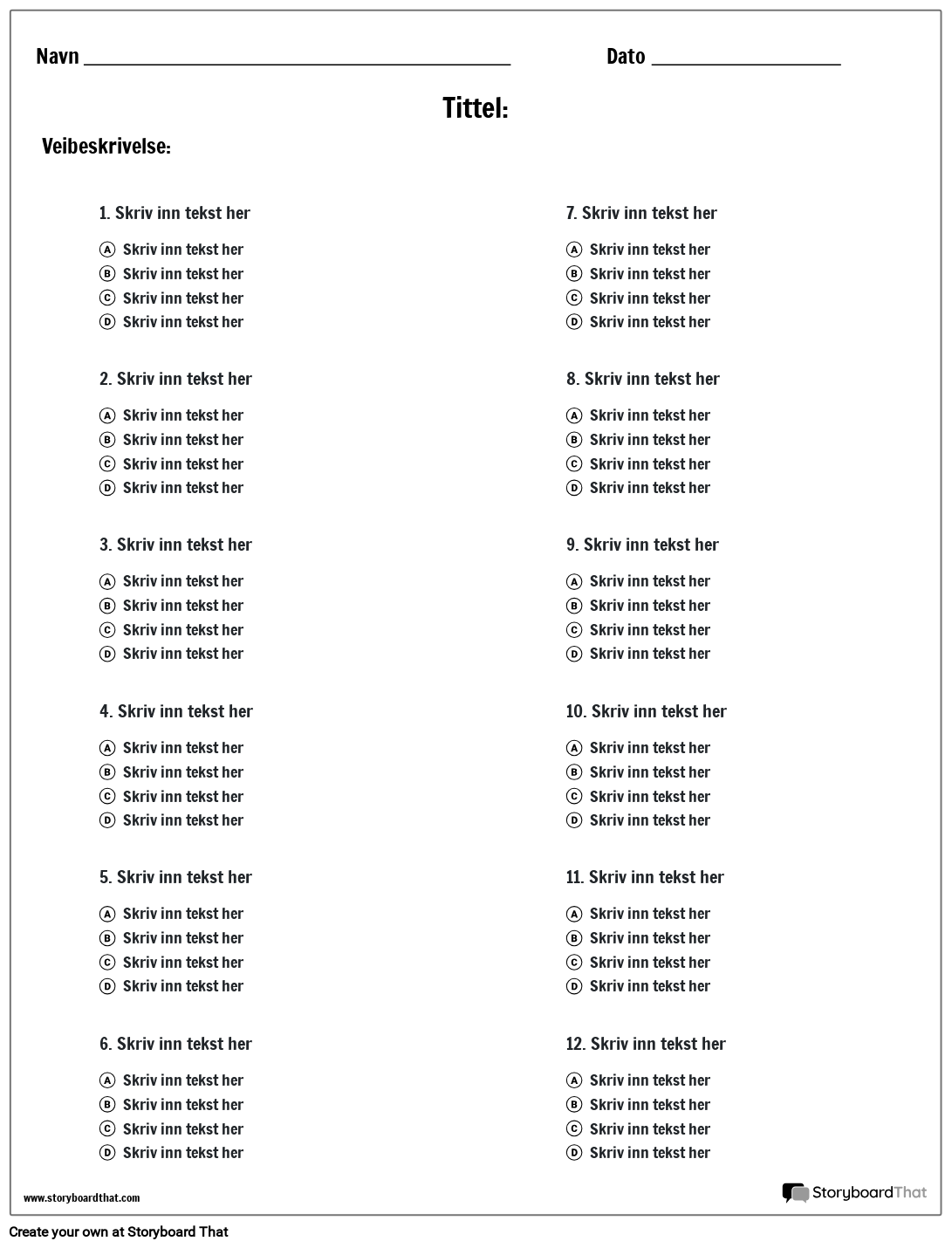 Flervalgsmal - to kolonner | Lag flervalgsquizer for studenter