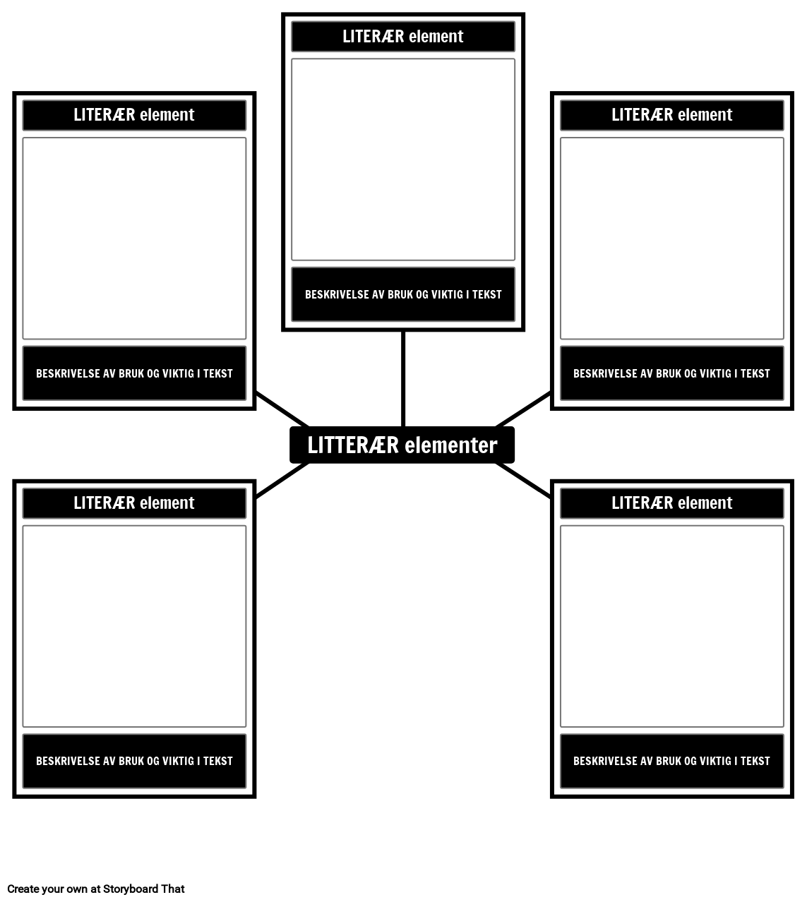 Literary Element Spider Map Mal - Identifiser og skildre litterære elementer fra teksten. Ta med en beskrivelse av betydningen.