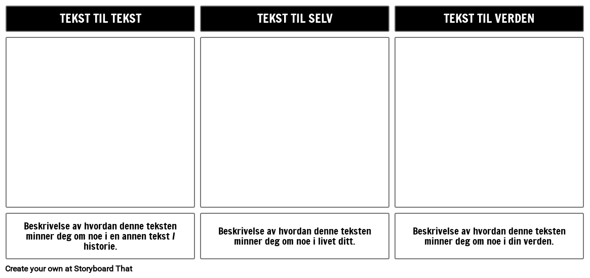 Teksttilkoblingsmal | Be elevene beskrive og skildre tekstforbindelser de har til en annen tekst, til seg selv og til verden