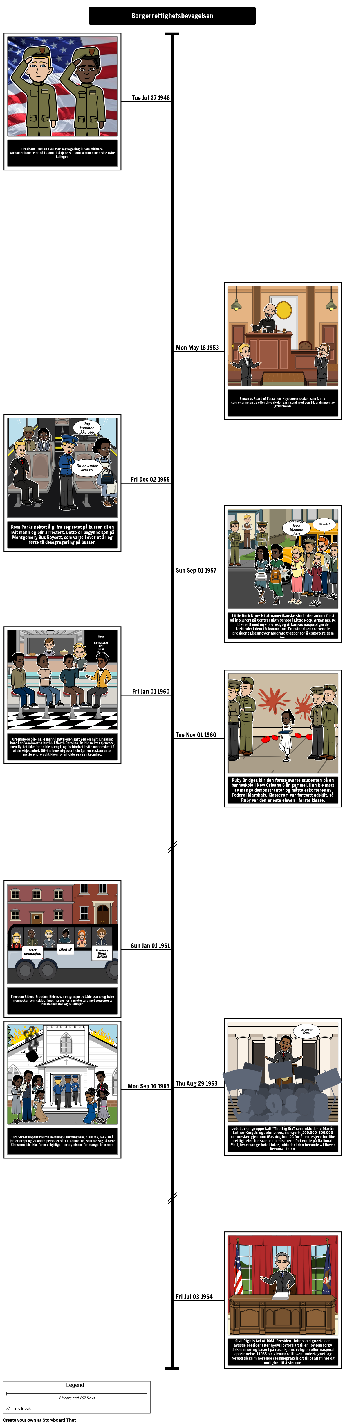 Lag en tidslinje som illustrerer flere viktige hendelser som skjedde under Civil Rights Movement.